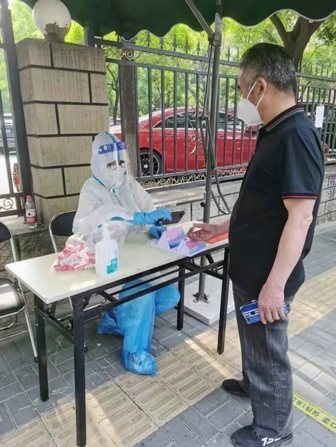 5月19日早上6:30,绿色啄木鸟招募的疫情防控先锋队朱国凤、王洪淑、陈娟、郑秀凤、孙燕、赵玉贤等10名队员,走进德胜街道人定湖西里社区进行支援。志愿者们不畏风险,不辞辛苦地开展为民服务。他们采集人员信息,维护检测现场秩序、监督提醒居民扫码,劝导不文明行为,提醒保持距离、带好口罩等防护用品。