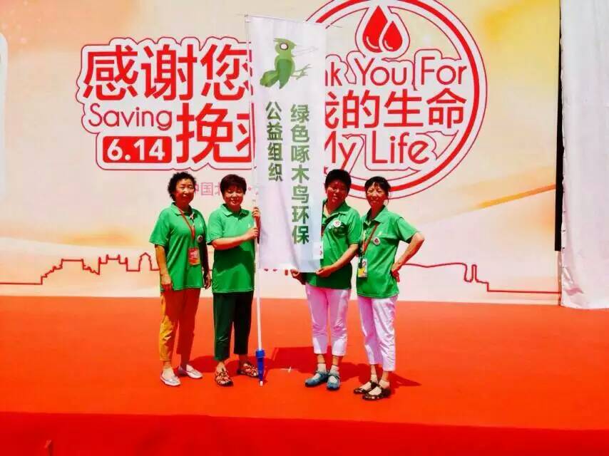 2015年6月14日,一大早,绿色啄木鸟志愿者吴淑娟,李素芬,范文静,凌云在陈颖怡副会长带领下来到美丽的园博园参加了北京市血液中心主办的“感谢您挽救我的生命”世界献血日盛大庆典活动。